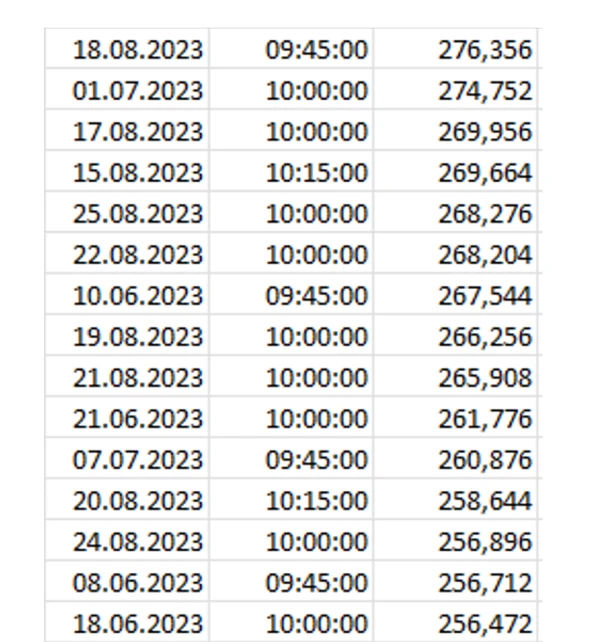 Lastspitzen identifizieren: Datum und Uhrzeit mit hohem Energiebedarf und deren Ursachen (z. B. Maschinenstart, Produktionszyklen) analysieren.